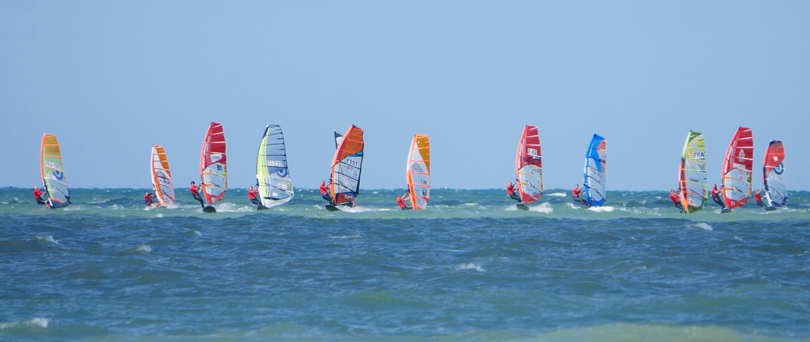 Les prévisions n’étaient pas très encourageantes pour ce samedi avec peut-être un vent forcissant en fin d’après-midi! Néanmoins le comité a voulu forcer la montée du thermique en baissant l’aperçu dès 14h30. Résultat, une après-midi à cramer intégralement sur la plage pour boucler une course au forceps dans un vent très juste avec des molles en dessous de 12nds et un parcours petit pour 8 coureurs et carrément minuscule pour 13 coureuses… De là à dire que Nicolas Warembourg, membre du comité et conseiller sur l’épreuve tenait à vouloir rattraper Antoine Questel dans des conditions qu’il affectionnait en poussant pour que ça courre, il n’y a qu’un pas.